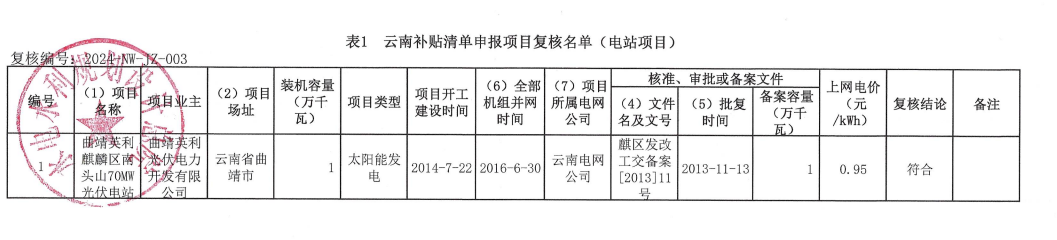 根據(jù)《財政部辦公廳關(guān)于開展可再生能源發(fā)電補貼項目清單審核有關(guān)工作的通知》(財辦建〔2020〕6號)和《國家可再生能源信息管理中心關(guān)于可再生能源發(fā)電補貼項目清單申報與審核工作有關(guān)要求的公告》等文件要求,相關(guān)可再生能源發(fā)電企業(yè)對滿足條件的可再生能源發(fā)電項目進行補貼清單申報,經(jīng)云南電網(wǎng)初審、云南省能源局審核確認(rèn)、國家可再生能源信息管理中心復(fù)核。現(xiàn)將國家可再生能源信息管理中心復(fù)核通過的云南補貼清單申報項目復(fù)核名單(電站項目)予以公示。