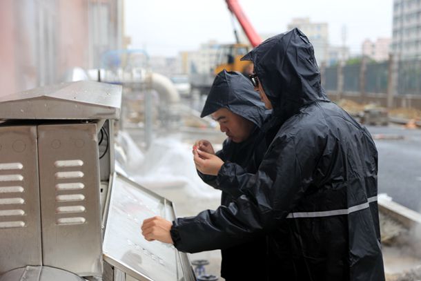 圖為該公司工作人員正在安裝計量設(shè)備