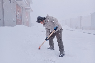 在冰凍中連續(xù)作業(yè)二、三個小時,冰雪落在他們的帽子上、衣服上、鞋上,凝結成僵硬的冰塊;吹在頭發(fā)上、胡渣上,化作冰花將他們變成“守護平安”的圣誕老人模樣。