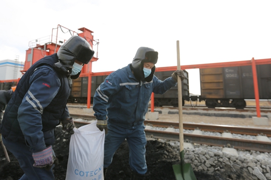 同時,該廠駐大唐安徽公司東營項目部全體黨員,在山東東營港零下17攝氏度的“速凍”天氣下,頂著刺骨的寒風(fēng)揚起黨建紅色旗幟,爭分奪秒搶卸火車凍煤,并通過人工接力的方式迅速將凍煤運至煤場,該項目部黨支部充分發(fā)揮組織優(yōu)勢,筑牢基層黨組織戰(zhàn)斗堡壘作用,獲得了業(yè)主方高度好評。