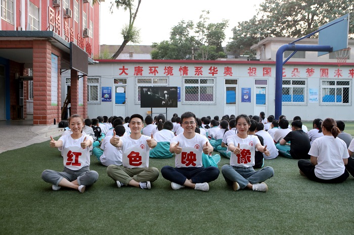 紅色觀影感懷。大唐環(huán)境為華奧學(xué)校捐贈影音播放器材,由該公司志愿者組建“紅色映像”放映隊(duì),精選《小兵張嘎》《地道戰(zhàn)》等經(jīng)典紅色電影,課后傍晚在學(xué)校的操場上,為在校住宿的學(xué)生播放露天電影。在觀影現(xiàn)場,學(xué)生們?nèi)褙炞ⅰ⒛坎晦D(zhuǎn)睛地看著大屏幕,時(shí)而嚴(yán)肅緊張,時(shí)而默默落淚,深深被電影中跌宕起伏的英雄故事所震撼和吸引。放映結(jié)束后,孩子們對電影情節(jié)展開了熱烈地討論,在感受露天觀影快樂的同時(shí),將愛黨愛國教育的種子深深植入孩子們心田,他們紛紛表示,要珍惜來之不易的美好生活,更加努力學(xué)習(xí),回報(bào)祖國、回報(bào)社會。