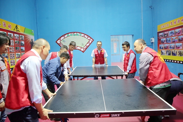 當天上午9時,該公司招募了來自三期項目黨支部的10余名黨員志愿者,開展了第一次“陜電之光”志愿服務(wù)活動,為當晚即將進行的湖南石門五洲乒乓球俱樂部“五周年慶典暨健平源杯”乒乓球團體賽布置場地?;顒又校驹刚邆凖R心協(xié)力將乒乓球臺、比賽圍欄以及其他比賽用具等抬至規(guī)定的位置,精心布置乒乓球團體賽活動場地,展現(xiàn)了無私奉獻、團結(jié)友愛、助人為樂、積極向上的志愿風(fēng)采。