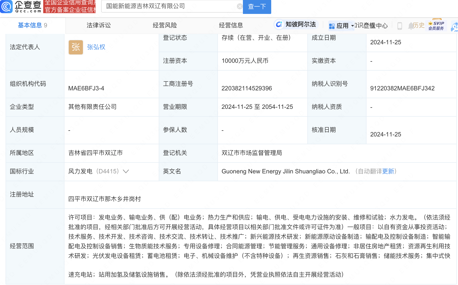 近日,國能新能源吉林雙遼有限公司成立,法定代表人為張弘權(quán),注冊資本1億人民幣,經(jīng)營范圍含新興能源技術(shù)研發(fā)、新能源原動設(shè)備制造、生物質(zhì)能技術(shù)服務(wù)等。企查查股權(quán)穿透顯示,該公司由國家能源投資集團(tuán)有限責(zé)任公司旗下國能吉林新能源發(fā)展有限公司、國能雙遼發(fā)電有限公司共同持股。