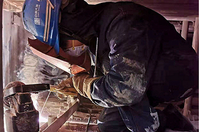 修復(fù)振打器磁軸,更換脫落的陰極線,對(duì)倒伏的陽極板進(jìn)行清理、恢復(fù)、固定,唐匯軍就這樣一樣樣地、默默無聞地做著,偶爾工作間隙里,他會(huì)開兩句玩笑,緩和一下枯燥和疲憊。出了爐子,吃個(gè)工作餐,耽誤不到半個(gè)小時(shí),又立即扎進(jìn)了工作中,身邊的同事總是被他的工作態(tài)度激勵(lì)著。“不能偷懶?;?,必須檢查到位,修必修好。”爬出爐子時(shí)已經(jīng)腰酸背痛,唐師傅依舊微笑得那么純粹。這項(xiàng)檢修工作持續(xù)了半個(gè)月,才得以很好完成。