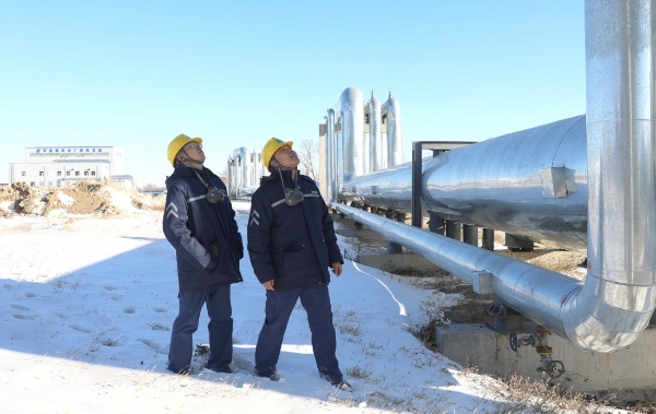 烏拉特發(fā)電廠熱網(wǎng)部運維人員巡視檢查轄區(qū)供熱設(shè)備