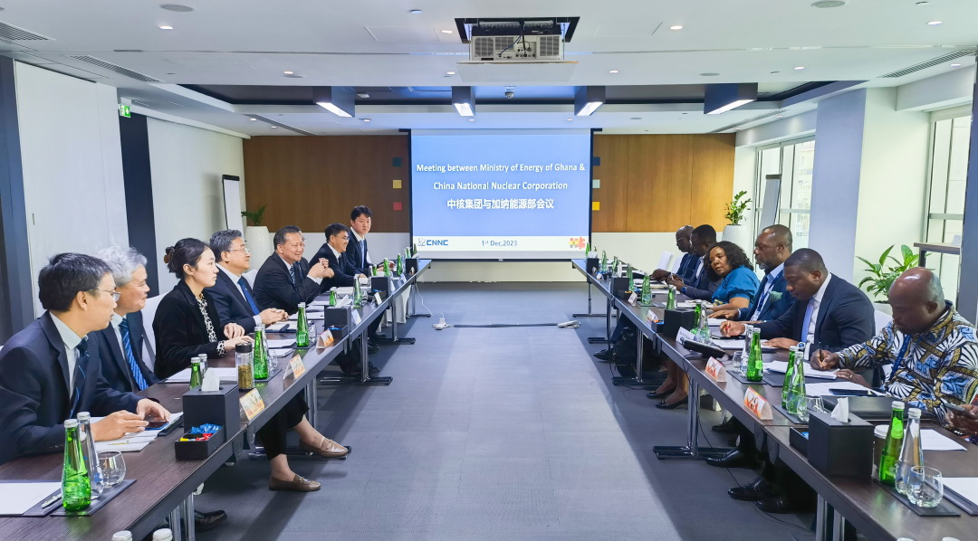 為進(jìn)一步推動(dòng)核能國際合作,促進(jìn)核能在應(yīng)對(duì)氣候變化中發(fā)揮更大作用,11月30日至12月1日第28屆聯(lián)合國氣候變化大會(huì)(COP28)期間,中核集團(tuán)董事長(zhǎng)余劍鋒率團(tuán)出訪阿聯(lián)酋,與阿聯(lián)酋核能公司董事總經(jīng)理兼總裁哈馬迪舉行會(huì)談,雙方簽署了第三國核能聯(lián)合開發(fā)與投資的諒解備忘錄。訪阿期間,余劍鋒還應(yīng)約會(huì)見了世界核協(xié)會(huì)總干事萊昂、加納能源部長(zhǎng)普倫佩,就進(jìn)一步深化合作達(dá)成共識(shí)。