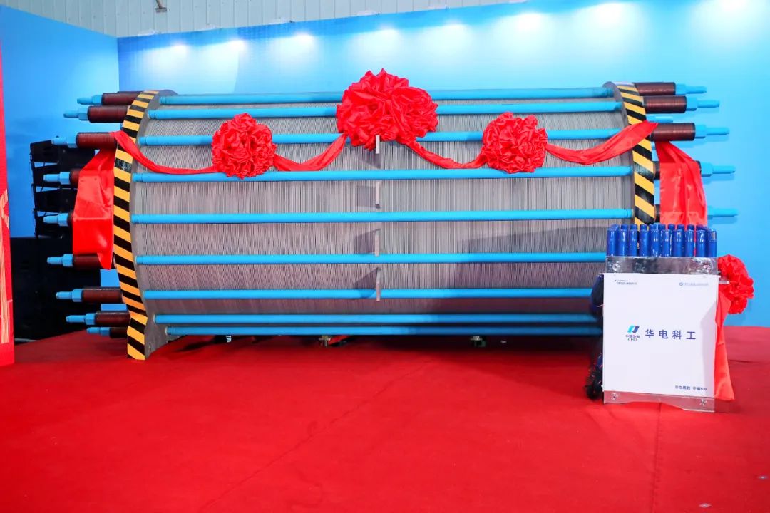 1月3日,由中國華電所屬中國華電科工集團(tuán)有限公司自主研發(fā)的3300標(biāo)方堿性電解槽及與中國科學(xué)院聯(lián)合開發(fā)的500標(biāo)方PEM電解槽正式下線、2.5兆瓦PEM電解槽實(shí)證平臺(tái)投用,標(biāo)志我國可再生能源電解水制氫裝備實(shí)現(xiàn)新突破,對(duì)加快構(gòu)建新型能源體系、實(shí)現(xiàn)“雙碳”目標(biāo)具有重要意義。中國工程院院士彭蘇萍,加拿大工程院院士深圳技術(shù)大學(xué)未來技術(shù)學(xué)院院長劉清俠,天津市北辰區(qū)委書記倪斌,區(qū)委副書記、區(qū)長徐暉,區(qū)委副書記閆峰,副區(qū)長、開發(fā)區(qū)黨工委書記(兼)李維東,集團(tuán)公司戰(zhàn)略規(guī)劃部總監(jiān)吳韶華、科技信息部副主任張宇龍,公司黨委書記、董事長彭剛平,黨委委員、副總經(jīng)理、總工程師李建標(biāo)出席活動(dòng)。