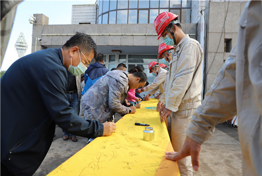 在宣誓活動(dòng)前,為營造安全氛圍,我長山廠組織職工開展“安全生產(chǎn)月”簽名活動(dòng),職工在“落實(shí)安全責(zé)任,推動(dòng)安全發(fā)展”條幅上莊嚴(yán)寫下了自己的承諾。