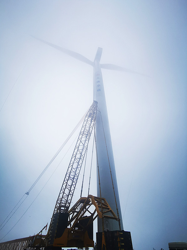 該項(xiàng)目自2021年8月2日全面開工建設(shè)以來(lái),全員克服時(shí)間緊、任務(wù)重,以及夏季長(zhǎng)時(shí)間高溫、近期溫度驟降、山上風(fēng)力較大等重重困難,縝密部署,團(tuán)結(jié)拼搏,以扎實(shí)的管理、良好的協(xié)調(diào)、有力的措施,特別是針對(duì)作業(yè)高峰期充分討論、采取舉措,在大件運(yùn)輸、吊裝等工作中做到了有方案、有計(jì)劃、有落實(shí)。經(jīng)過(guò)節(jié)假無(wú)休、連續(xù)作戰(zhàn),先后完成了十臺(tái)風(fēng)機(jī)基礎(chǔ)澆筑工作,并于10月13日正式完成首臺(tái)風(fēng)機(jī)吊裝工作,呈現(xiàn)出“驕陽(yáng)壁嶺轟聲震,崇山風(fēng)嘯鐵臂搖”的一派火熱建設(shè)局面。