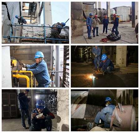 1月1日一上班沒多久,該公司熱機(jī)二班人員就接到了一個(gè)“大工程”——搶修1號(hào)爐B引風(fēng)機(jī)動(dòng)葉。引風(fēng)機(jī)作為風(fēng)煙系統(tǒng)的重要設(shè)備,其動(dòng)葉不能正常操作將直接影響到機(jī)組的高效穩(wěn)定運(yùn)行。盡管空氣中充斥著難聞的硫化物味道,但熱機(jī)二班搶修人員毫不畏懼,加班加點(diǎn),攻堅(jiān)克難,在起重人員、焊工人員等的協(xié)助下,通過(guò)齊心協(xié)力吊裝大鋼板阻斷返回的煙氣,保證人員安全作業(yè),于次日凌晨4時(shí)多完成B引風(fēng)機(jī)動(dòng)葉搶修。為了節(jié)省時(shí)間,搶修人員中飯和晚飯都是在現(xiàn)場(chǎng)或站著、或蹲著吃盒飯解決。期間,該公司黨委委員、副總經(jīng)理劉陸軍和生產(chǎn)各級(jí)管理人員多次到現(xiàn)場(chǎng)監(jiān)督指導(dǎo),確保現(xiàn)場(chǎng)作業(yè)安全。