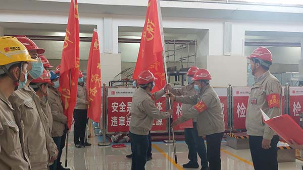 活動中,該公司黨委委員、紀(jì)委書記、工會主席李強(qiáng)同志宣讀了公司黨委印發(fā)《關(guān)于在1號機(jī)組A級檢修工作中充分發(fā)揮黨團(tuán)組織作用的通知》的文件要求。公司黨委書記、執(zhí)行董事、總經(jīng)理薛福林同志為“1號機(jī)組A級檢修”黨員突擊隊(duì)、黨員服務(wù)隊(duì)、青年突擊隊(duì)分別授旗。生產(chǎn)一線黨員代表、青年代表分別圍繞1號機(jī)組A級檢修工作實(shí)際作了《黨員承諾》《青年承諾》。公司黨委委員、副總經(jīng)理錢明雄同志帶領(lǐng)廣大黨員在檢修現(xiàn)場面向鮮紅的黨旗重溫了入黨誓詞。