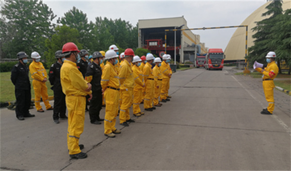演練模擬暴雨,運(yùn)行人員檢查發(fā)現(xiàn)卸煤溝、#2帶尾雨水倒灌,積水快速上升,啟動(dòng)排污泵和臨時(shí)增加的排水泵,水位仍無法控制,立即向值長(zhǎng)匯報(bào)。值長(zhǎng)接報(bào)現(xiàn)場(chǎng)查看后,迅速向應(yīng)急辦公室報(bào)告險(xiǎn)情……應(yīng)急辦公室向應(yīng)急指揮部報(bào)告后,公司啟動(dòng)應(yīng)急預(yù)案,一時(shí)間,各應(yīng)急工作組迅速集結(jié)至#1轉(zhuǎn)運(yùn)站,應(yīng)急指揮部身先士卒,帶領(lǐng)各路人員開展應(yīng)急搶險(xiǎn)。經(jīng)各方共同努力,險(xiǎn)情被控制,應(yīng)急總指揮宣布:#1轉(zhuǎn)運(yùn)站淹水應(yīng)急演練結(jié)束。
