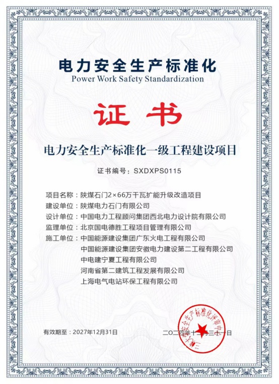 陜煤石電:電力安全生產(chǎn)標(biāo)準(zhǔn)化“一級達(dá)標(biāo)項目”+1