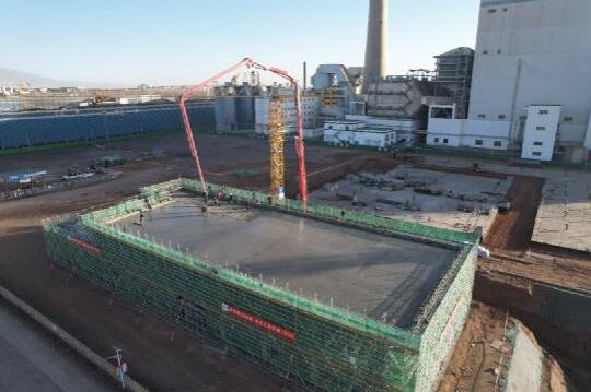 中國(guó)電力網(wǎng)訊(通訊員 周香香)12月11日下午,隨著混凝土從泵車(chē)管道輸出,鍋爐補(bǔ)給水處理站頂板澆筑工作徐徐展開(kāi),本次澆筑的梁、板、樓梯采用C35混凝土,柱采用C40混凝土,柱、梁混凝土保護(hù)層厚度為20mm,板混凝土保護(hù)層厚度為15mm,澆筑量共計(jì)450立方米,歷時(shí)7小時(shí)澆筑完成。