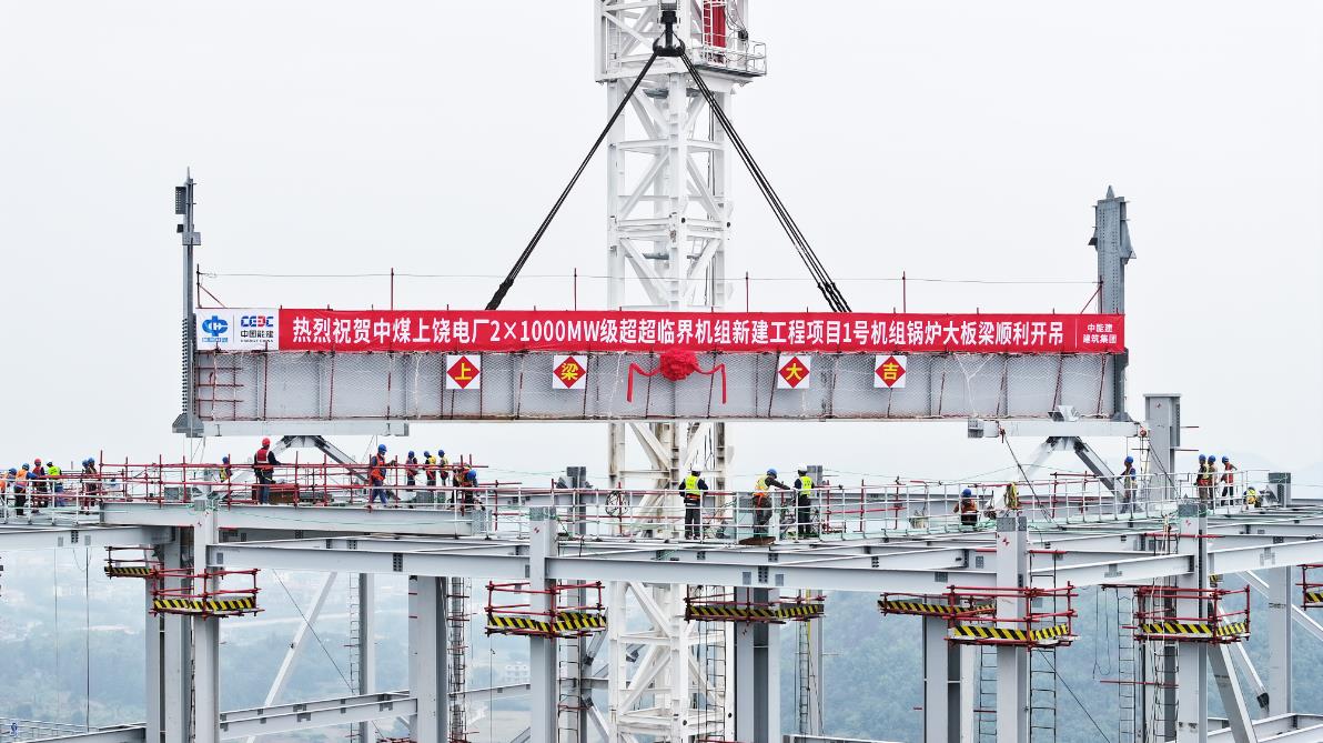 11月4日,中國能建建筑集團承建的江西上饒發(fā)電廠2×1000兆瓦級超超臨界機組新建工程1號機組鍋爐大板梁開吊。
