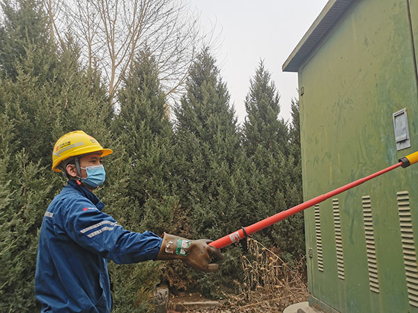 團(tuán)員青年對(duì)外引電源開(kāi)關(guān)進(jìn)行驗(yàn)電