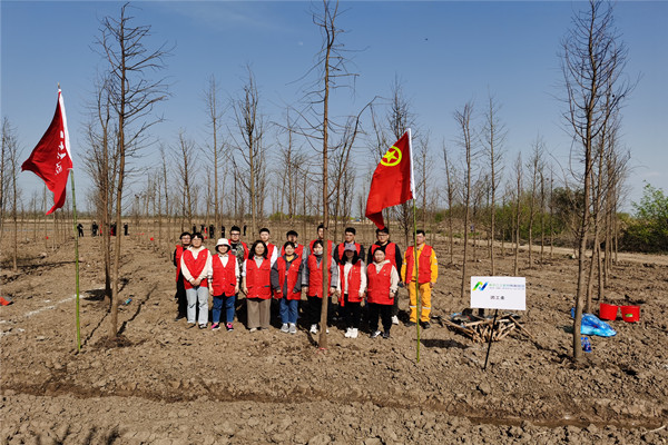 本次活動由來自江北新區(qū)財政局、建設(shè)投資集團(tuán)、綜合行政執(zhí)法總隊黨員代表,新材料科技園領(lǐng)導(dǎo)及紀(jì)工委、機(jī)關(guān)、團(tuán)工委、公用事業(yè)公司、市政綠化公司黨員、團(tuán)青代表共計百余人參加。植樹地點在緊鄰公司的岳子河,16塊責(zé)任區(qū)順著道路兩旁依次排開,我公司青年員工代表身著鮮亮的工裝,在春日的暖陽下顯得格外奪目。聽從園區(qū)團(tuán)工委的指揮,我公司青年代表擼起袖子就是干,一人挖坑、一人扛樹、一人扶樹、一人填土。從烈日當(dāng)空干到落日余暉,對他們來說好像就是一眨眼的工夫,一望無際的荒地上像是插上了百歲老人的生日蠟燭,兩人多高的樹木帶著點點新芽,無人問津的土地?zé)òl(fā)出了盎然生機(jī)。