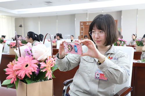 一件件融合了女職工們豐富想象力的美麗插花作品展現(xiàn)在了大家的面前,女職工們幸福的笑容與花朵相互交融。最后,女職工紛紛與自己的花籃合影留念,記錄下這幸福美好的時刻。