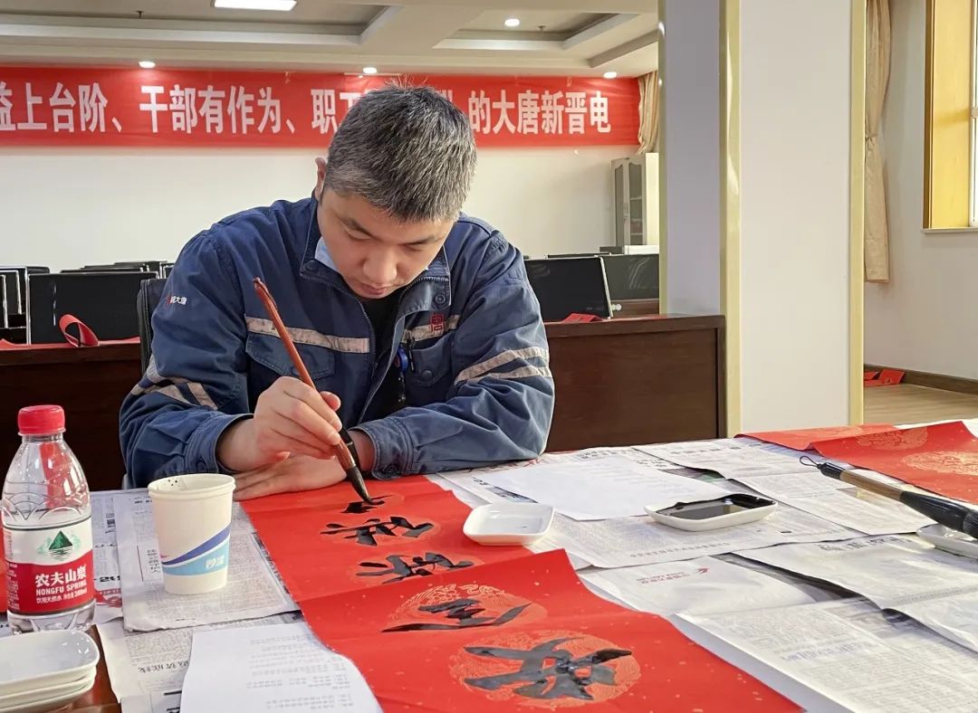 他寫的多幅與安全生產(chǎn)相關(guān)的春聯(lián)作品被張貼在公司辦公樓門口和生產(chǎn)廠區(qū)各區(qū)域大門上,成為“門面擔(dān)當(dāng)”,助力營造生產(chǎn)現(xiàn)場安全文化氛圍的同時,也獲得電氣班“神筆馬良”的美稱。