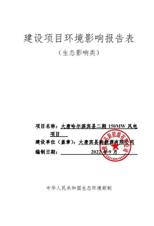 大唐哈爾濱賓縣二期150MW風(fēng)電項(xiàng)目環(huán)境影響報(bào)告