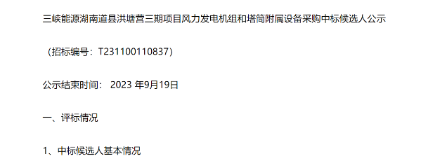 公告顯示,第一中標(biāo)候選人:浙江運(yùn)達(dá)風(fēng)電股份有限公司,投標(biāo)報(bào)價(jià):130,815,000.00元。