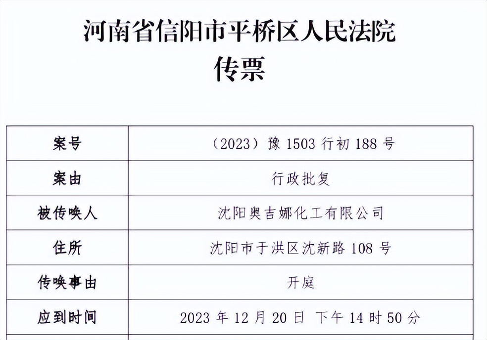 2023年12月1日,中國(guó)風(fēng)電潤(rùn)滑油龍頭企業(yè)沈陽(yáng)奧吉娜化工有限公司(下簡(jiǎn)稱奧吉娜公司)收到河南省信陽(yáng)市平橋區(qū)人民法院開庭傳票,奧吉娜公司訴信陽(yáng)市生態(tài)環(huán)境局和第三人華陽(yáng)長(zhǎng)青投資有限公司行政訴訟案,將于2023年12月20日14時(shí)50分開庭審理。屆時(shí),這起風(fēng)電潤(rùn)滑油央企招投標(biāo)“民告官”第一案結(jié)果如何,讓我們拭目以待。