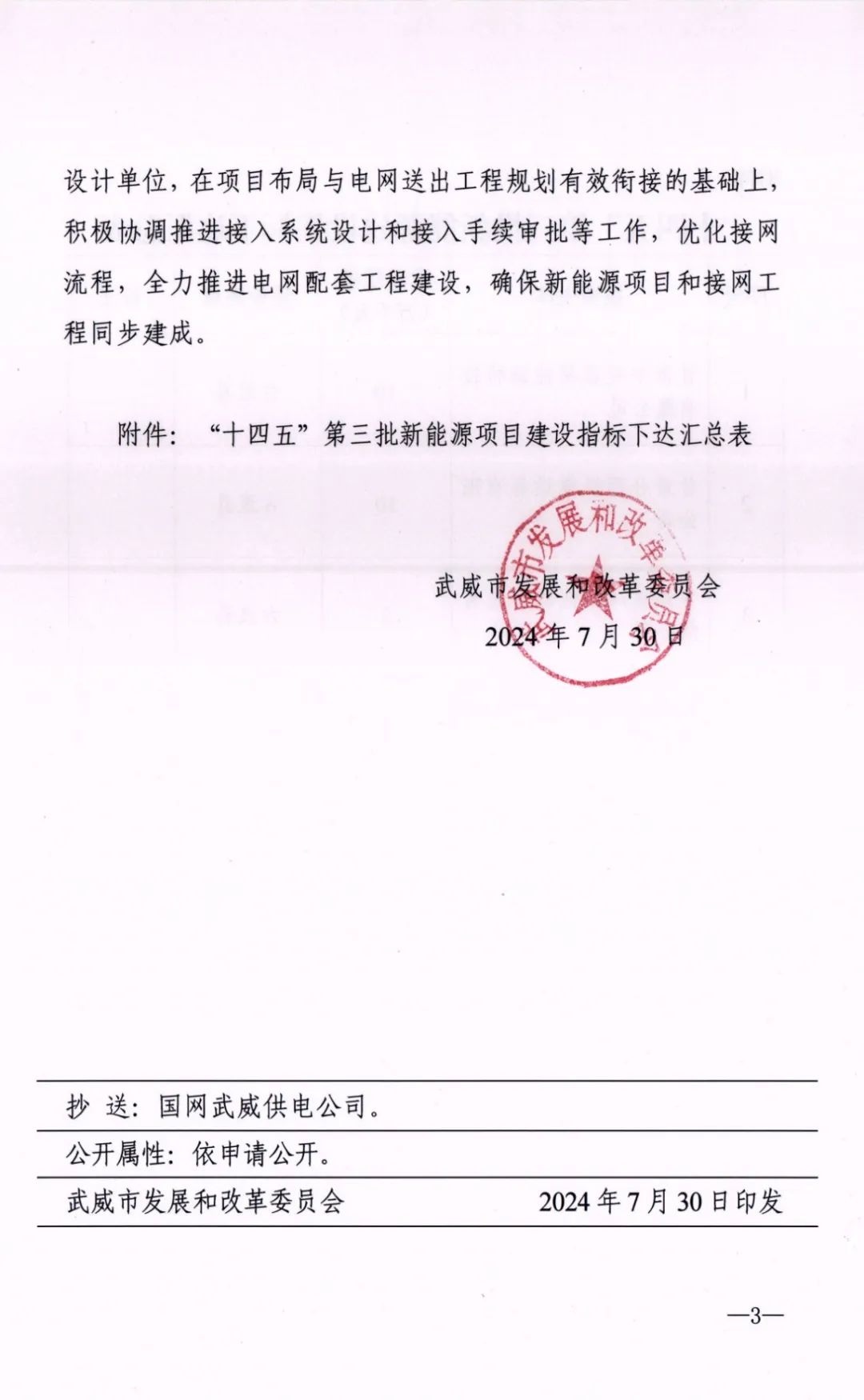 7月30日,甘肅省武威市發(fā)改委發(fā)布《關(guān)于下達(dá)“十四五”第三批新能源建設(shè)指標(biāo)的通知》。