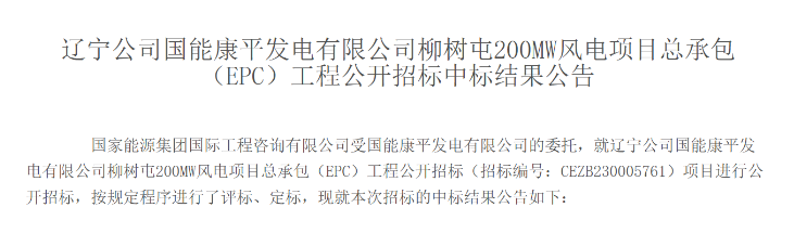國能康平發(fā)電有限公司柳樹屯200MW風(fēng)電項目總裝機(jī)容量為200MW,安裝43臺單機(jī)容量為4550kW和1臺單機(jī)容量為4350kW的風(fēng)電機(jī)組,所選機(jī)型單位千瓦掃風(fēng)面積不低于6.2m2/kW,葉輪直徑不低于190m,輪轂高度140m,新建一座220kV升壓站。計劃工期:2023年7月31日-2024年6月30日。