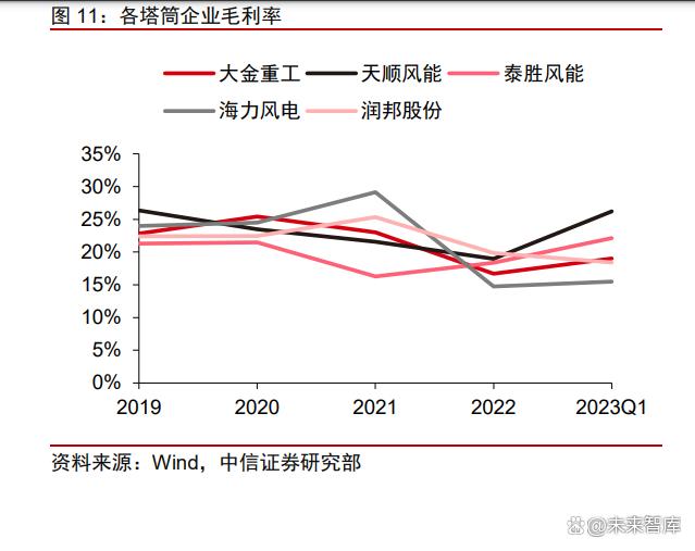 塔筒樁基存在提價(jià)預(yù)期,盈利能力有望改善。受益新增風(fēng)電裝機(jī)規(guī)模高增速和海風(fēng)項(xiàng) 目深遠(yuǎn)?;l(fā)展,風(fēng)電行業(yè)高景氣背景下塔筒樁基需求有望迎來高速增長(zhǎng)。從年度維度看, 參考?xì)v史季節(jié)性因素,二季度塔筒交付旺季來臨,頭部企業(yè)訂單普遍已排至下半年,全年 產(chǎn)能利用率預(yù)計(jì)維持飽和狀態(tài)。從出貨增速維度看,預(yù)計(jì)各塔筒樁基企業(yè) 2023、2024 年 均保持較高增速,行業(yè)存在提價(jià)預(yù)期,加工費(fèi)有望上行,改善塔筒盈利能力。一季度頭部 企業(yè)業(yè)績(jī)已基本兌現(xiàn),盈利能力環(huán)比好轉(zhuǎn),隨著交付旺季的來臨和擴(kuò)產(chǎn)項(xiàng)目的落地,塔筒 樁基有望迎來量利齊升的快速發(fā)展期。