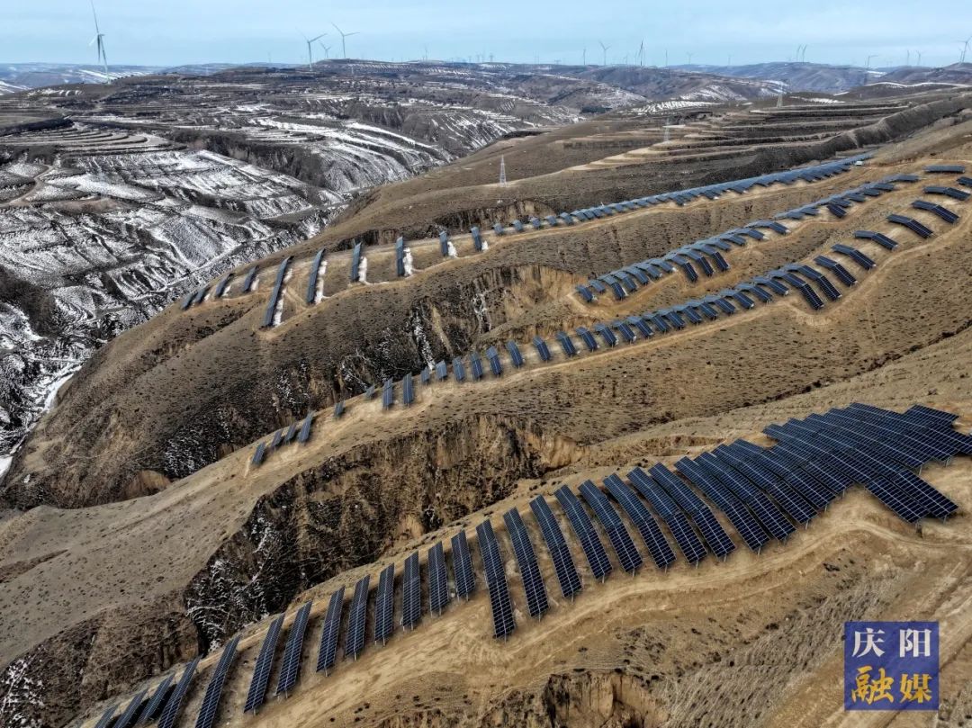 早春時(shí)節(jié),環(huán)縣重重山溝梁峁間殘雪未消,寒風(fēng)獵獵,極目之處,黃土地雖蕭瑟蒼茫,卻并不荒涼。一座座風(fēng)力發(fā)電機(jī)乘風(fēng)轉(zhuǎn)動(dòng)、一排排光伏電板熠熠生輝、一條條高壓銀線臨空飛躍……如今,這里已成為新能源投資的熱土,“遍地開花”的新能源項(xiàng)目,勾勒出一派“風(fēng)光”無限的壯麗圖景。