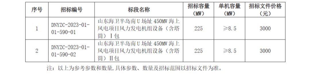 近日,國(guó)家電投發(fā)布《國(guó)家電力投資集團(tuán)有限公司二〇二三年度第六批集中招標(biāo)(山東海衛(wèi)半島南 U場(chǎng)址 450MW海上風(fēng)電項(xiàng)目風(fēng)力發(fā)電機(jī)組設(shè)備(含塔筒)采購(gòu))招標(biāo)公告》。