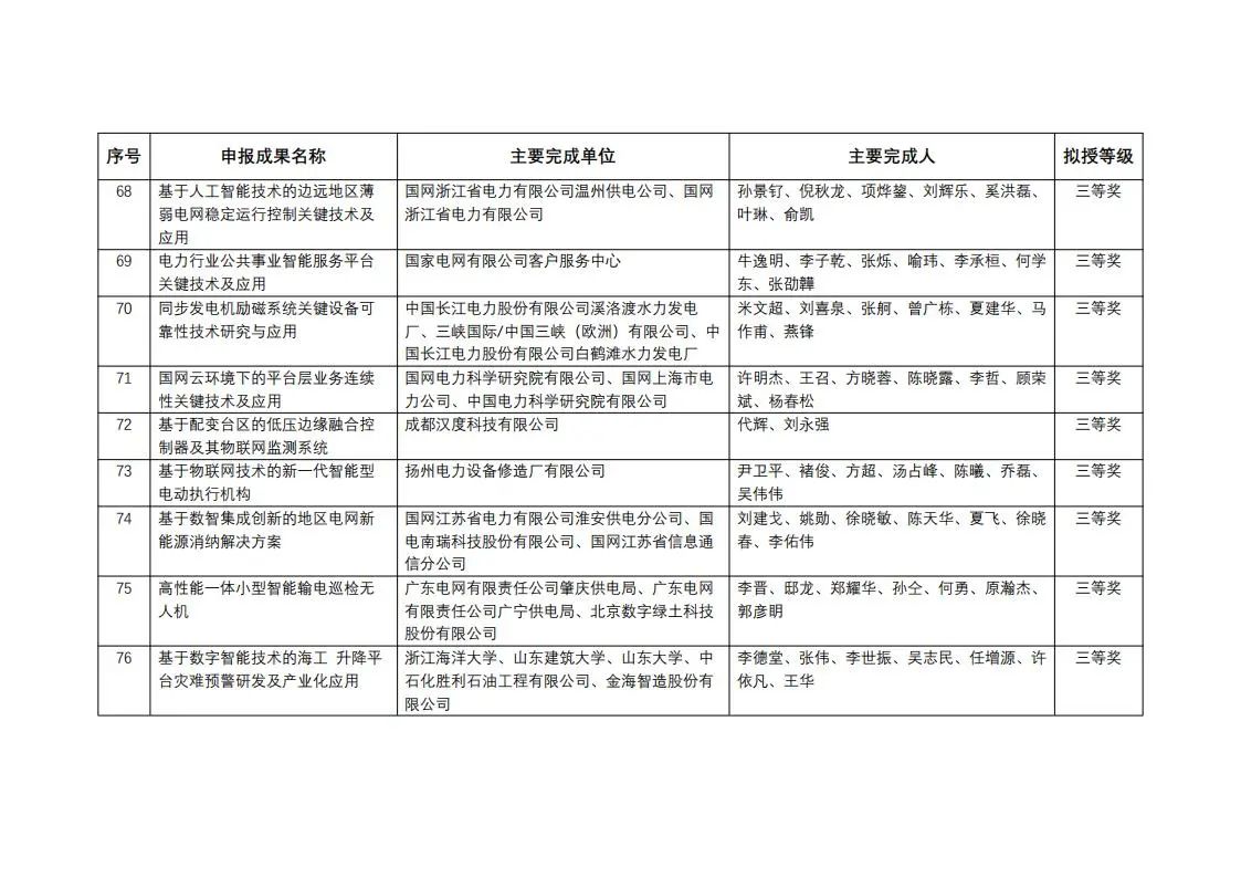 中國電力發(fā)展促進會科學技術獎勵委員會于2023年10月18日召開審定會議,審定確認2023年度科學技術獎(數智電力類)擬授獎成果共計87項(排名不分先后),其中擬授一等獎15項、二等獎28項、三等獎44項。