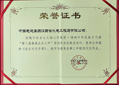 六十七年崢嶸歲月,六十七載光輝歷程,江西水電沉積著不同時期“江水人”的深刻記憶,繼承和發(fā)揚優(yōu)秀的企業(yè)文化精神。“十四五”期間,江西水電在轉(zhuǎn)型升級與量質(zhì)提升的重要時期,大力實施“文化強企”戰(zhàn)略,系統(tǒng)梳理和提升江水文化理念體系,量身打造“理念、行為、視覺、制度”等系統(tǒng)文化;大力踐行“匠造時代精品 澤潤美好生活”的企業(yè)使命,推動“整合資源、搭建平臺、開放合作、共生共贏”的經(jīng)營理念的融合,注重把“江水文化”底蘊融入生產(chǎn)經(jīng)營,以文化建設(shè)助推品牌建設(shè),極大提升企業(yè)知名度、美譽度。