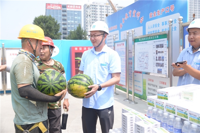 慰問中,領(lǐng)導(dǎo)班子成員親手將藿香正氣水等防暑降溫慰問品送到奮戰(zhàn)在一線的工人手上,黨支部書記、項(xiàng)目指揮長(zhǎng)叢培建強(qiáng)調(diào),我們要切實(shí)把工人的身體健康放在首位,不斷改善一線勞動(dòng)者的工作條件,嚴(yán)格落實(shí)防暑降溫保障工作,確保奮戰(zhàn)在一線的勞動(dòng)者安全度夏,保障生產(chǎn)工作有序開展,積極創(chuàng)造更好的勞動(dòng)環(huán)境,切實(shí)維護(hù)好工人合法權(quán)益。
