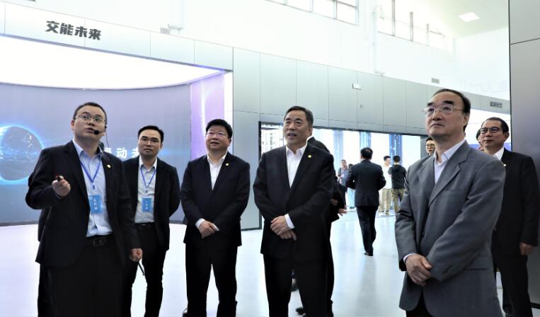 宋海良一行參觀了金鄉(xiāng)零碳智慧服務區(qū)、中國能建交能融合展廳,同項目管理人員、技術(shù)人員進行交流,仔細觀看沙盤模型、智慧管理系統(tǒng)演示、光伏發(fā)電及儲能裝備、電動汽車充換電展示,對項目建設情況給予了高度肯定。