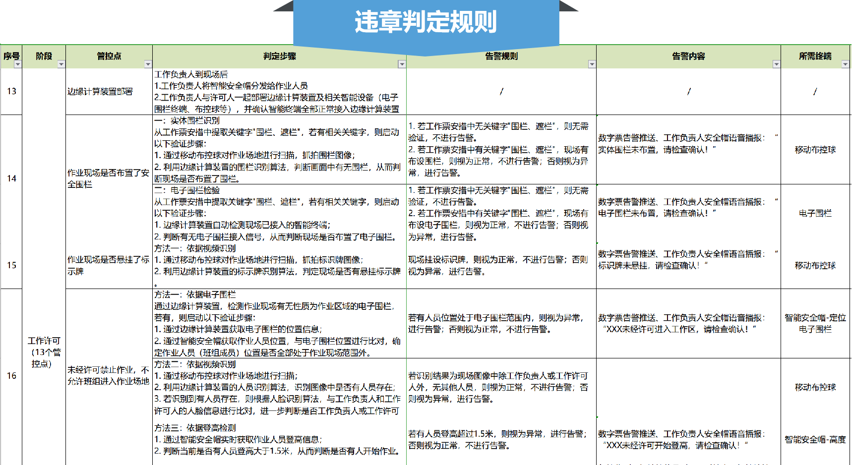 數(shù)字化安全管控判定規(guī)則是業(yè)務與科技融合的靈魂。在國網(wǎng)安監(jiān)部和國網(wǎng)浙江電力公司的指導下,國網(wǎng)信通產(chǎn)業(yè)集團項目組深入輸、變、配一線班組調(diào)研,圍繞“四個管住”,全面梳理典型違章案例與安規(guī)標準內(nèi)涵,結(jié)合數(shù)字化工作票,設計形成《數(shù)字化安全管控違章判定規(guī)則》和118項風險管控點,以技術手段彌補傳統(tǒng)安全管控存在的不足,為數(shù)字化安全管控的設計研發(fā)奠定業(yè)務基礎。