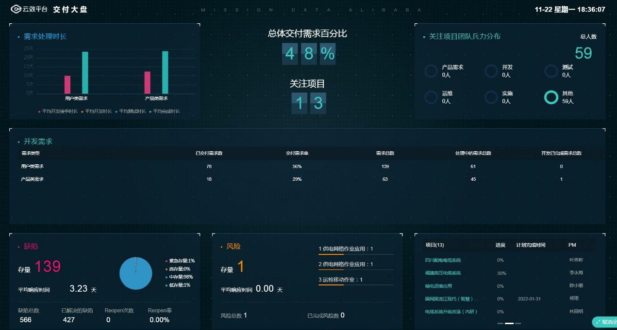 圖 2 云效管理平臺監(jiān)測大盤