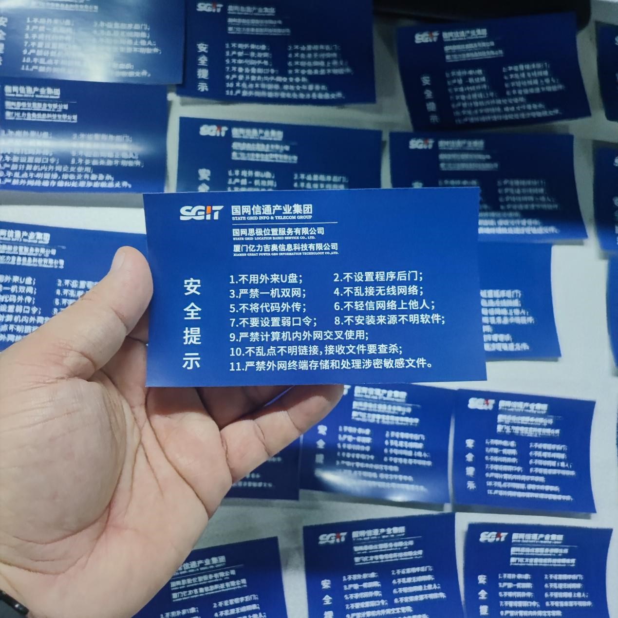 為了更好的普及網(wǎng)絡安全知識,提高全體員工網(wǎng)絡安全意識,國網(wǎng)信通產(chǎn)業(yè)集團思極位置(吉奧)融合了信息系統(tǒng)研發(fā)、“十八禁和十不放過”等內容制作了網(wǎng)絡信息安全提示小貼紙,下發(fā)至北京、廈門、武漢、南京等各個辦公區(qū)和項目地,總發(fā)放量超過500張。同時組織開展“遵守安全生產(chǎn)法,當好第一責任人”主題簽名活動,增強員工的安全責任意識,強化員工遵守安全生產(chǎn)規(guī)定的警覺性,營造了濃厚的安全文化氛圍。