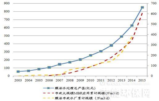 市政大規(guī)模MBR應(yīng)用和膜法市政水廠規(guī)模變化與膜法水處理行業(yè)產(chǎn)值變化趨勢(shì)高度一致