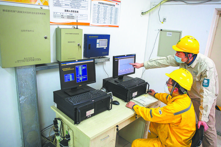 超低排放改造也被稱為“超凈排放”“近零排放”,是指對燃煤發(fā)電機(jī)組環(huán)保設(shè)施做進(jìn)一步提效改造,使其污染物排放水平達(dá)到燃?xì)鈾C(jī)組標(biāo)準(zhǔn),即用煤發(fā)電跟用天然氣發(fā)電的污染物排放水平相當(dāng)。按國家標(biāo)準(zhǔn),“十三五”期間,燃煤發(fā)電機(jī)組的二氧化硫、氮氧化物、煙塵三項(xiàng)主要污染物排放標(biāo)準(zhǔn)要分別從100毫克/立方米、100毫克/立方米、20毫克/立方米,壓縮到35毫克/立方米、50毫克/立方米、10毫克/立方米。改造是否到位,成效是否可靠,數(shù)據(jù)聯(lián)網(wǎng)工作是檢驗(yàn)達(dá)標(biāo)和政策落地的重要環(huán)節(jié)。近日,記者走進(jìn)江蘇發(fā)電企業(yè)環(huán)保數(shù)據(jù)匯總分析的“中樞”,一探全省火力發(fā)電企業(yè)節(jié)能減排成效。