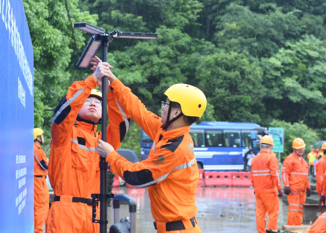 演練中,應(yīng)急隊員根據(jù)現(xiàn)場指揮長的指令迅速啟動防汛防臺應(yīng)急響應(yīng)。兩支搶險隊伍以最快速度到達(dá)災(zāi)區(qū),協(xié)助政府開展救援,為道路搶修作業(yè)現(xiàn)場提供應(yīng)急照明,對山區(qū)斷電線路進(jìn)行搶修,在完成演練任務(wù)的同時樹立了國家電網(wǎng)良好企業(yè)形象。演練也進(jìn)一步磨合了政企協(xié)同搶險保供電工作機制,全方位提升公司應(yīng)急搶險能力。