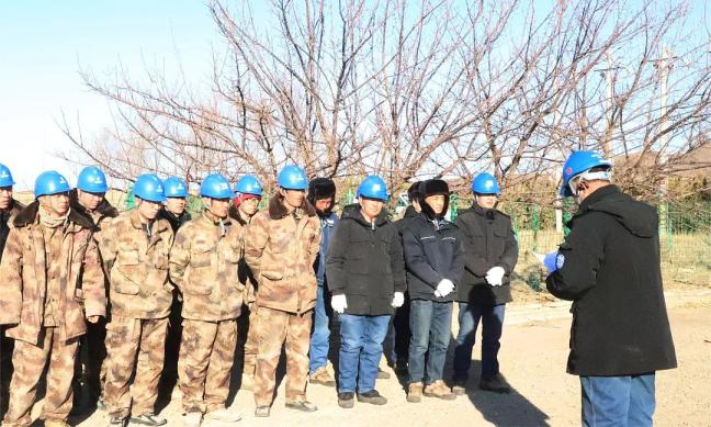 檢修工作現場,工作人員們嚴格遵守并履行安全工作規(guī)程,工作任務、危險點及保命措施了然于心,安全監(jiān)督人員和到崗到位人員認真監(jiān)督、嚴格把關,確保每一個作業(yè)人員都在安全的前提下高效作業(yè),整個現場井然有序,藍色與紅色的安全帽穿梭在銀線間,為枯黃的早春田野帶來了別樣的勃勃生機。