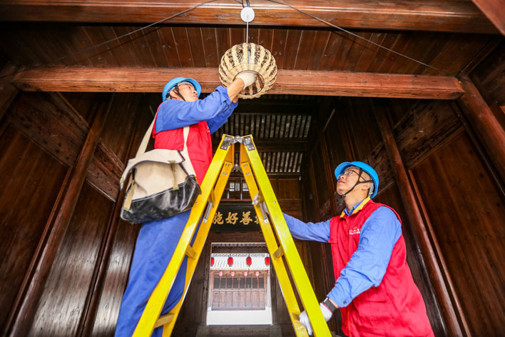 隨著秋冬季干燥氣候的到來,考慮到走馬樓的特殊木質(zhì)結構,國家電網(wǎng)浙江電力(鄞州)紅船共產(chǎn)黨員服務隊特意來到走馬樓,為該處做了一次綜合性的“體檢”工作。服務隊員重點對走馬樓的墻頭線、計量裝置進線以及計量裝置表后線進行了一一檢查,排查線路短路、絕緣老化和設備故障等運行隱患,針對照明設備損壞的情況,服務隊員利用自身技術技能,現(xiàn)場更換受損設備,共為走馬樓更換燈泡20盞,修復燈座15個。此外,供電人員還來到走馬樓另一側(cè)的居住區(qū),為其中居住的居民更換老舊表箱,消除居民日常生活中的用電隱患。為了保障走馬樓的日常用電安全,服務隊員還向管理人員進行了安全用電知識的科普宣傳,叮囑管理人員注意木質(zhì)結構房屋的用電安全,謹慎使用大功率電器,以免發(fā)生火災。