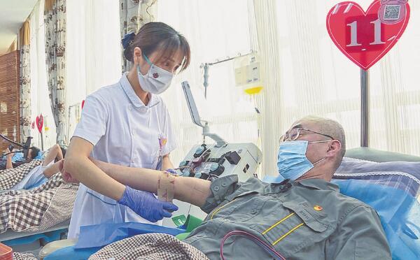現(xiàn)年55歲的朱皞,最大的夢(mèng)想是能將義務(wù)獻(xiàn)血的行動(dòng)堅(jiān)持到60歲(法律允許的最大年限)。每次獻(xiàn)血前,他都會(huì)提前三四天調(diào)整飲食和作息。“我要好好鍛煉身體,希望能獻(xiàn)血到退休那年。”朱皞說(shuō)。