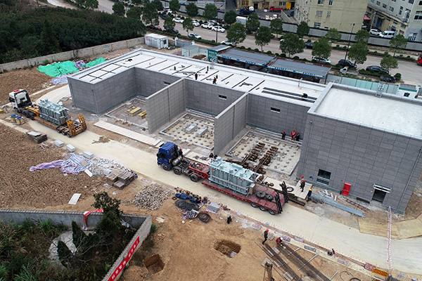 考慮到近期受山東青島疫情影響,國網寧??h供電公司對來自山東菏澤地區(qū)的運輸單位人員提前進行了移動軌跡審查備案,并在工地現場開展測溫消毒,為冬季疫情防控做足了充分準備。在各參建單位的周密部署下,經過兩天復雜的步驟和精細的操作,兩臺主變順利卸裝就位,主變就位精準、成品保護及現場環(huán)境滿足相關規(guī)范要求。