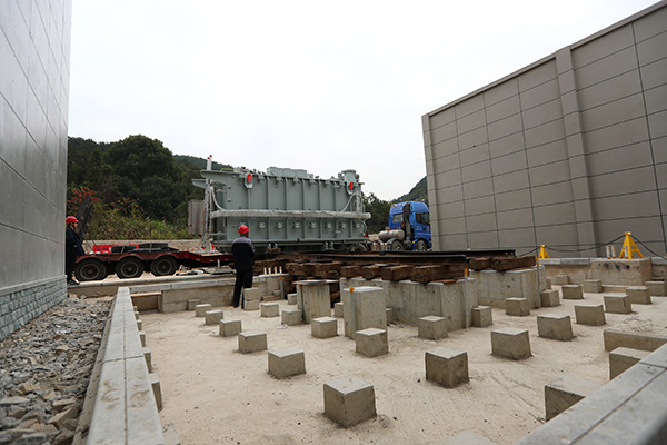 為保證變壓器順利運輸、安全就位。國網寧海縣供電公司前期做了大量的準備工作,與主變廠家、運輸公司、設計、施工單位人員多次溝通協調,帶領專業(yè)技術人員多次深入現場踏勘進站便道地形、路況,組織研討運輸和安裝方案,并對主變安裝施工人員進行了全面的安全、技術交底,對施工流程、人員分工、施工關鍵點控制等進行具體安排。由于本次主變來自山東魯能泰山電力設備有限公司,距離浙江寧海長達1015公里,承載著七十二噸的龐然大物,全程運輸六十五個小時,在克服沿線空障多、橋梁多、路況復雜等困難下,終于抵達了目的地。