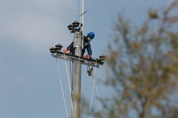 近日,在文家街道西河村,電力工作人員正在架設(shè)導(dǎo)線,將用電量超負(fù)荷的逢源線進(jìn)行割接,通過(guò)將線路延伸從而解決一部分用戶(hù)的用電低壓?jiǎn)栴}。
