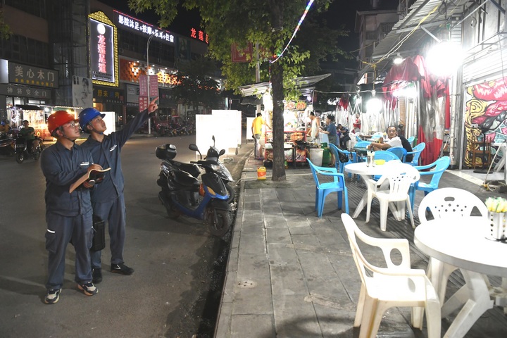 “注意照明燈和電風扇的用電安全,收攤時記得及時關閉電源。”“老板,你家插板插滿了,還放在離明火很近位置,最近天氣熱,要注意用電安全……”近日,南方電網貴州興義望謨供電局員工主動上門服務,幫助夜市攤販檢查用電設備,對夜市內的照明線路、開關等逐一檢查,對安全隱患和缺陷及時處理消缺,讓夜市攤主用上舒心電、放心電、安全電,助力夜經濟發(fā)展。這是該局為轄區(qū)“夜市經濟”提供安全可靠電力支撐的一個縮影。