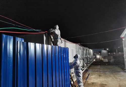 疫情就是命令,防控就是責(zé)任。國網(wǎng)東安縣供電公司黨委積極部署制定方案,以楊成為首的4名工作人員進(jìn)入防控區(qū)域進(jìn)行作業(yè),著全套防護(hù)服、攜帶登桿、搶修各類工具及材料進(jìn)入管控區(qū)域。隨后,工作人員開始對院內(nèi)的變壓器以及用電線路等設(shè)備進(jìn)行全面檢查,為盡快恢復(fù)隔離點供電,從排查電氣、監(jiān)測漏電保護(hù)器、更換導(dǎo)線,大家爭分奪秒。“夜間作業(yè)視線不好,要特別注意安全,要戴好口罩,注意自身的防護(hù)!”楊成叮囑每一位搶修人員,在應(yīng)急搶修燈的照明下,工作人員不敢有絲毫的麻痹大意,嚴(yán)密監(jiān)護(hù)作業(yè)……一道道工序有條不紊地進(jìn)行著,雖然天氣變冷,但是密不透風(fēng)的防護(hù)服和口罩很快便被汗水打濕,他們在夜幕中來回穿梭,與時間賽跑,與疫情競速,用時6小時,奮戰(zhàn)到晚上23點圓滿完成緊急供電任務(wù)。