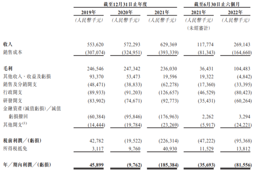 招股書顯示,2019年至2021年,億華通營(yíng)收分別為約5.54億元、5.72億元、6.29億元,期內(nèi)利潤(rùn)分別為約4589.9萬(wàn)元、-976.2萬(wàn)元、-1.85億元。進(jìn)入2022年,億華通在上半年的營(yíng)收和期內(nèi)利潤(rùn)分別達(dá)到2.69億元及-8155.6萬(wàn)元。
